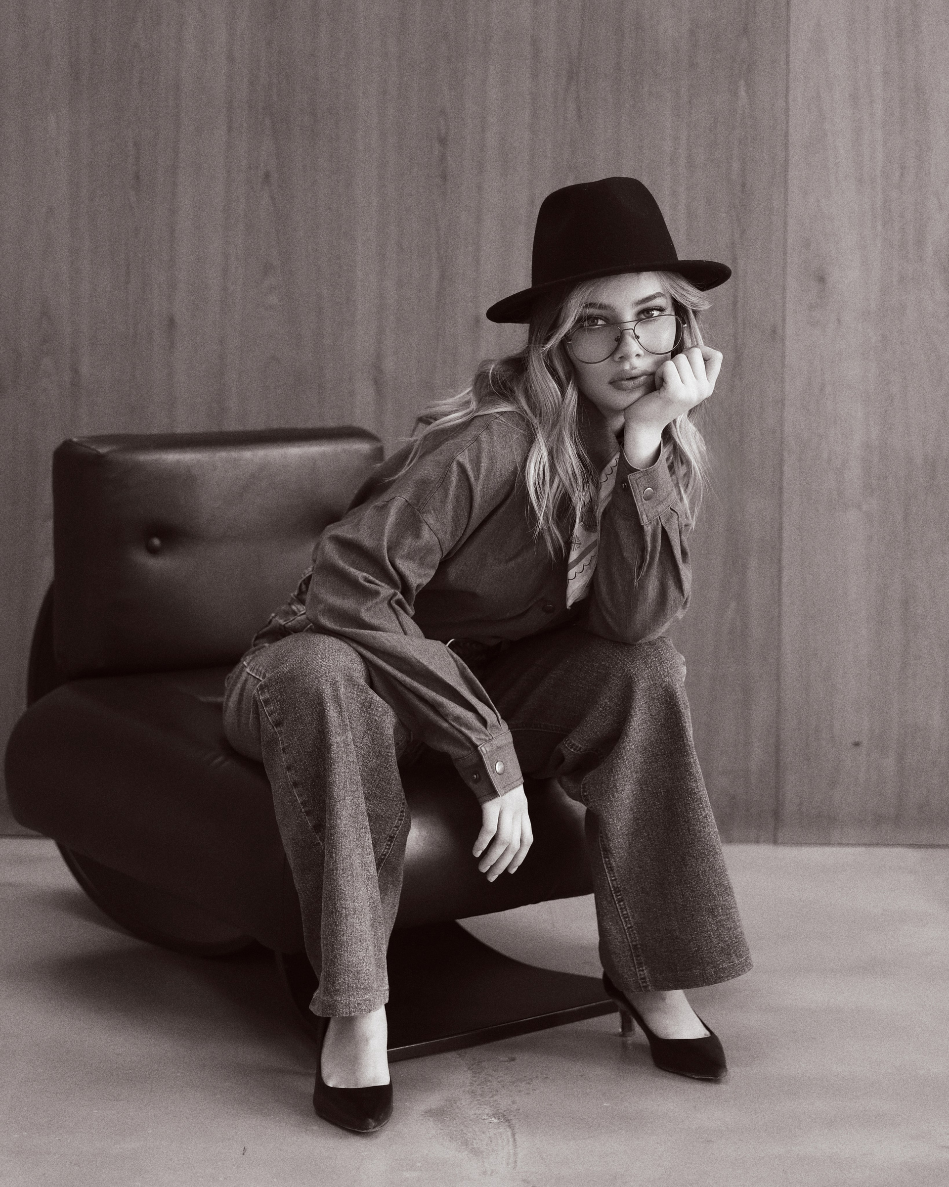 Stylized female photoshoot in cowgirl style